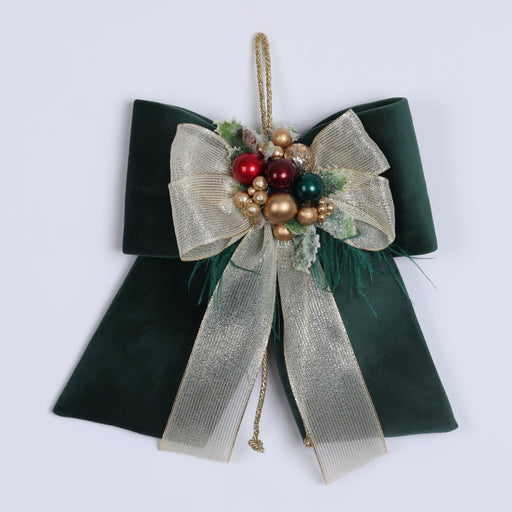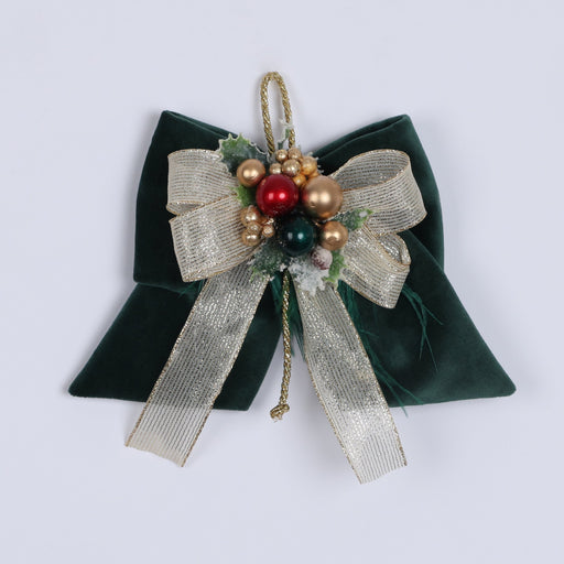 View full detailsFIORI DI LENA Fiocco Natalizio Verde Inglese in Velluto con Nastro e Sferette