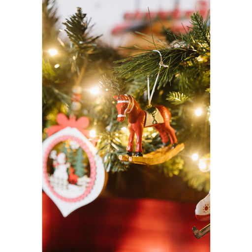 Nuvole di StoffaNUVOLE DI STOFFA presenta la Decorazione Cavalluccio a Dondolo Natalizio in Legno, un elemento d'arredo raffinato che unisce tradizione e artigiana...