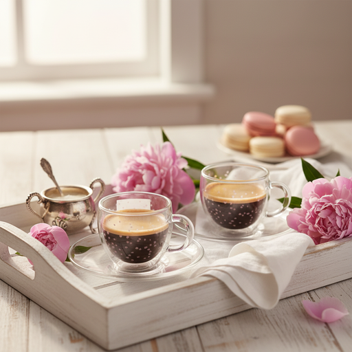 Set of 2 borosilicate coffee cups and saucers with hearts Clouds of fabric
