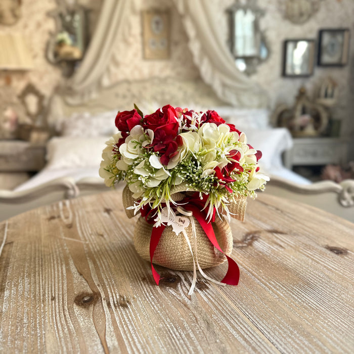FIORI DI LENA Cesto Dorato in Paglia con Fiori e Fiocco