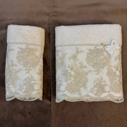 FIORI DI LENA Coppia Asciugamani Avorio con Pizzo Dorato