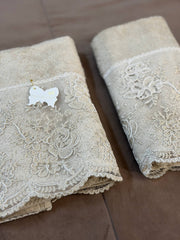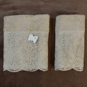 FIORI DI LENA Coppia Asciugamani Nocciola con Pizzo Dorato