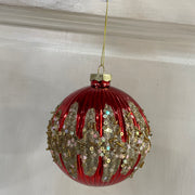 FIORI DI LENA Pallina Natalizia in Vetro con Stelline e Corallini