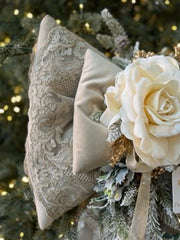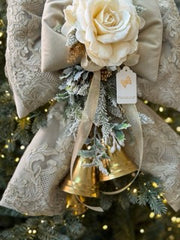 FIORI DI LENA Doppio Fiocco Nocciola in Velluto con Rosa Pizzo e Campane