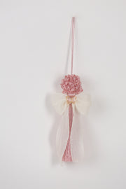Elegante nappa decorativa con angioletto e applicazione farfalla, disponibile in sei raffinate varianti di colore: rosa ,polvere, avorio, cognac, tortora, rosso e verde. Ogni nappa presenta una delicata farfalla coordinata che aggiungono un tocco di magia shabby chic.