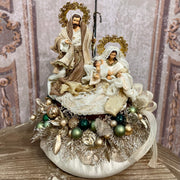 FIORI DI LENA Pouf Natalizio in Seta con Natività e Sferette Verdi 36cm