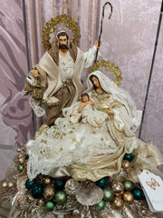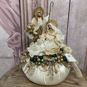 FIORI DI LENA Pouf Natalizio in Seta con Natività e Sferette Verdi