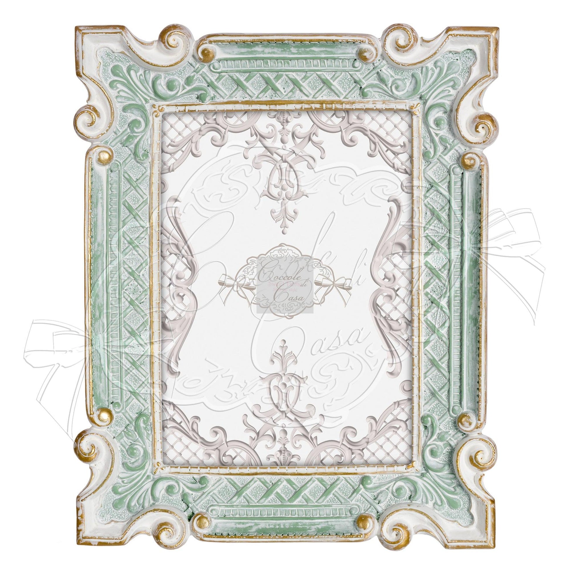 COCCOLE DI CASA Portafoto ELY Verde e Dorato in Resina