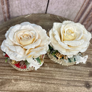 FIORI DI LENA Pouf Natalizio Rosso - Verdone e Rosa in Velluto con Pizzo
